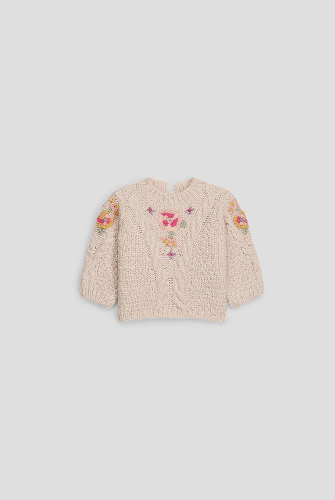 solid color knit sweater adorned with hand-embroidered flowers on front and sleeves 60% acrylic, 24% wool, 10% polyester, 6% alpaca  delicate wash,...