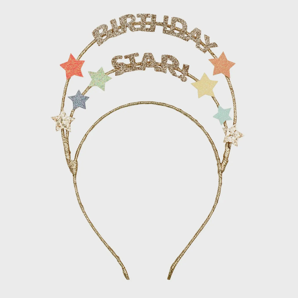 Description Feel like a superstar on your birthday with our birthday star headdress! Designed with gold glitter lettering and brightly coloured gli...