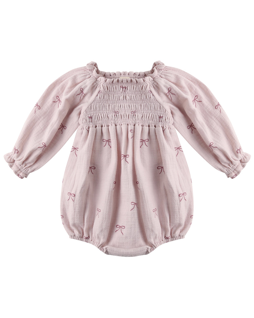 Our Eden Romper features delicate smocking across the chest, gathered ruffle details at the wrists, and a sweet ruffled neckline—an effortlessly ch...