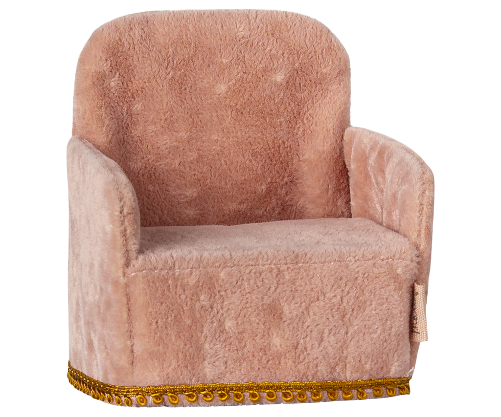 DescriptionA perfect place for your small Maileg friends to take a rest. It fits nicely into the Mouse hole Farmhouse. The chair is delivered flat ...