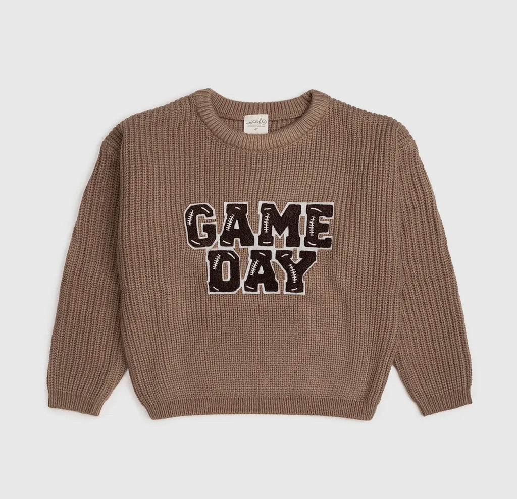 The Game Day Patch Knit Sweater is a fun and cute sweater for celebrating Game Day! Features: Sweater Color: Mocha Patch Color: Brown chenille wit...