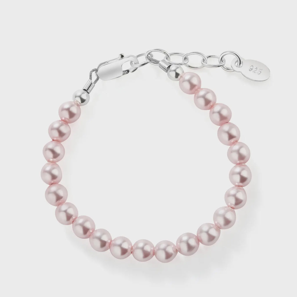 Description Beautiful sterling silver bracelet featuring a strand of light pink high-end Austrian simulated pearls - simple and classic! This looks...