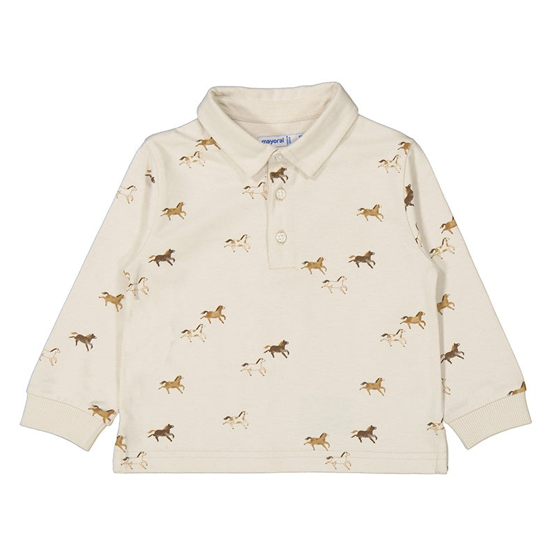 Long Sleeve Printed Polo - Mushroom