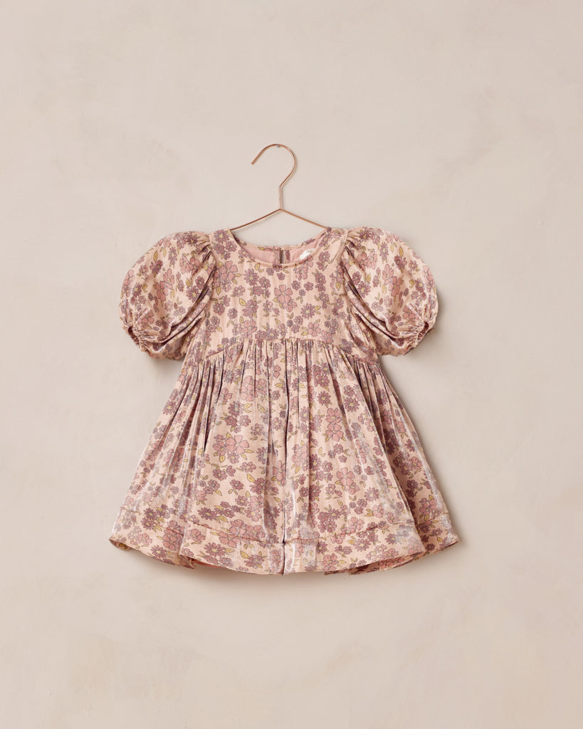 "Our Luna Dress showcases a babydoll-inspired silhouette with sweet puff sleeves, a gently curved waistline, and two faux shell buttons at the back...