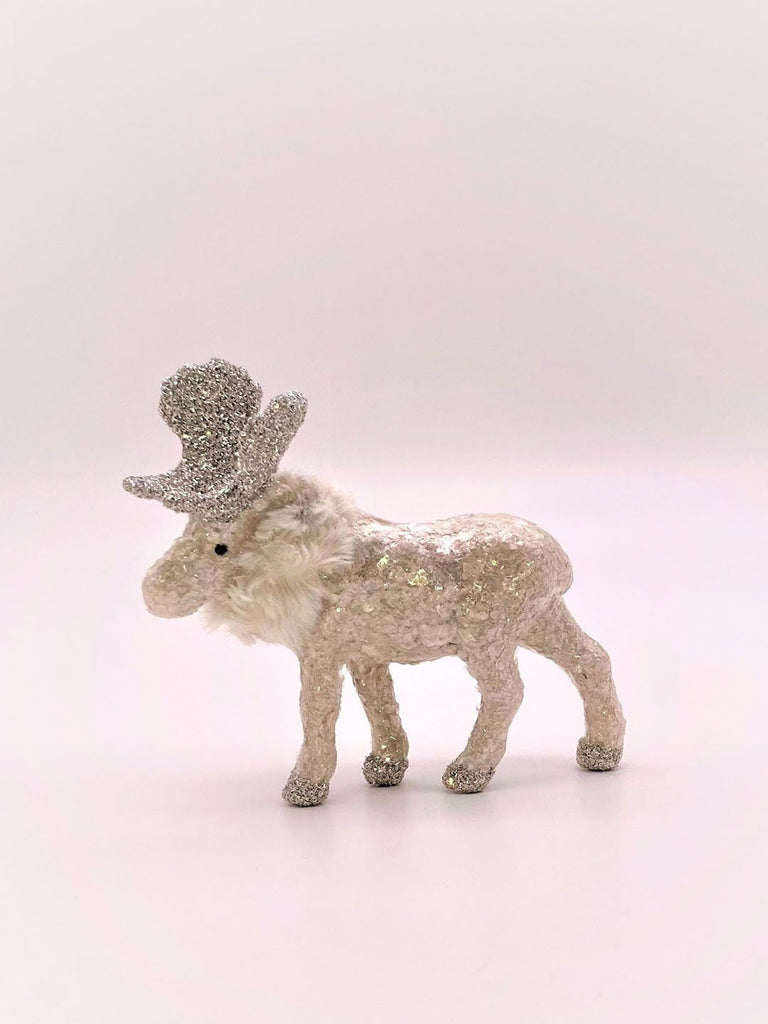 This moose is generously coated with light-reflecting gold mica; hooves and antlers are accented in German silver glass glitter; accessorized with ...