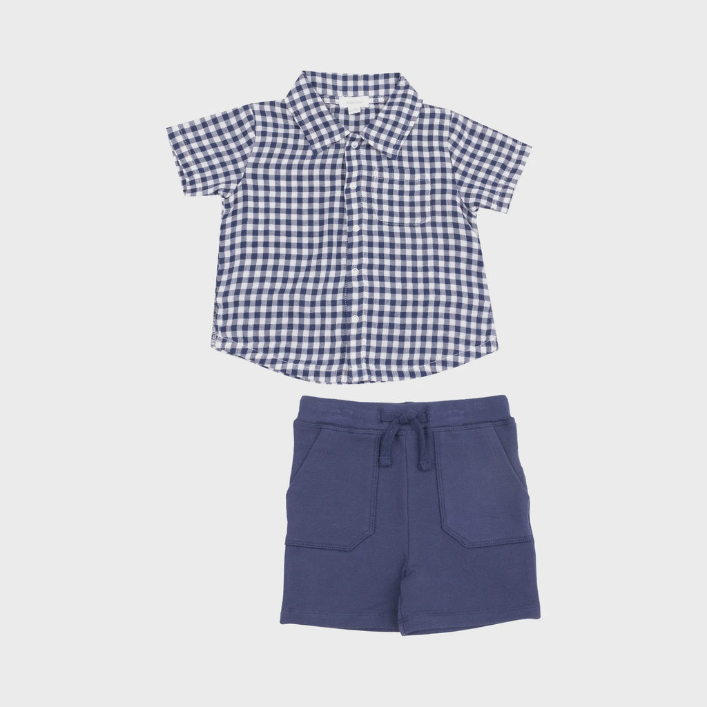 Navy Gingham Button Down Muslin Polo & Terry Short