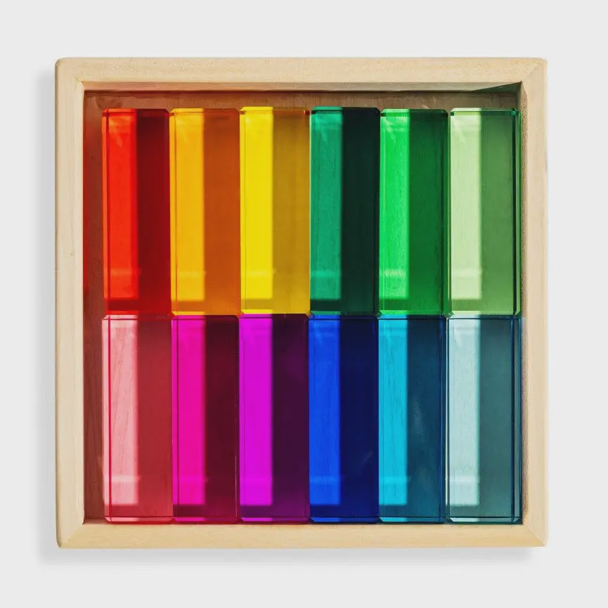 Description Introduce your child to the vibrant world of imaginative play with the Noa Blocks. A set of 12 translucent, rainbow-colored building bl...
