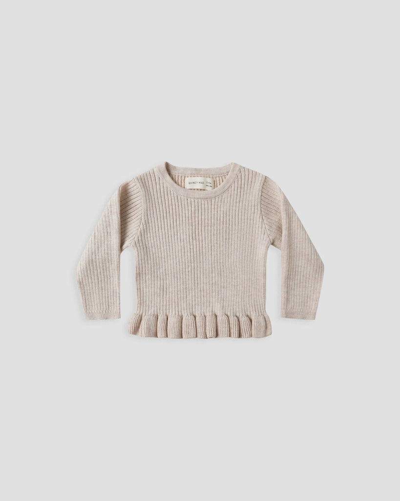 Rib Knit Peplum Top - Heathered Oatmeal