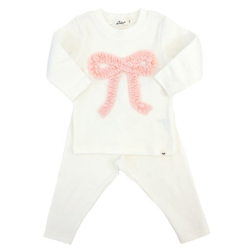RUFFLE BOW TERRY APPLIQUE 2PC SET