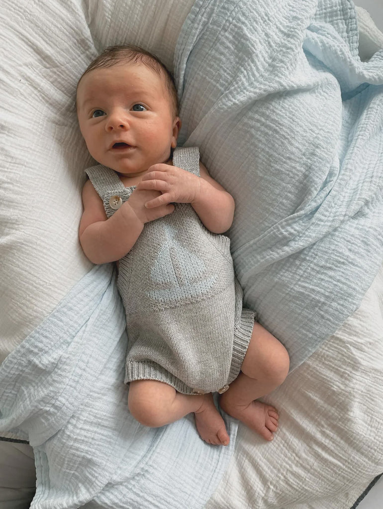 Set sail for summer in our Sailboat Romper! Made from organic cotton and featuring a playful jacquard sailboat print, this romper is perfect for wa...