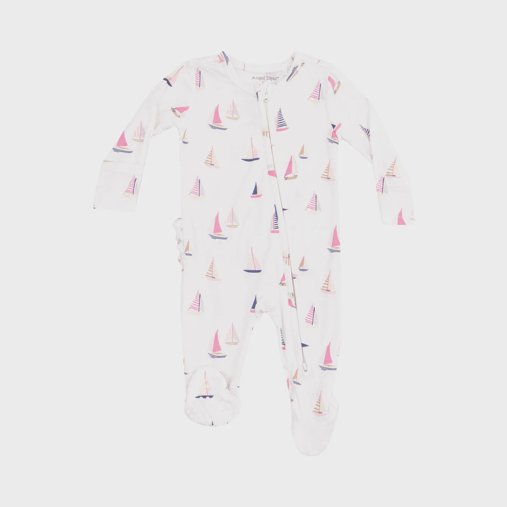 Sailboats Pink 2 Way Zipper Ruffle Back Footie
